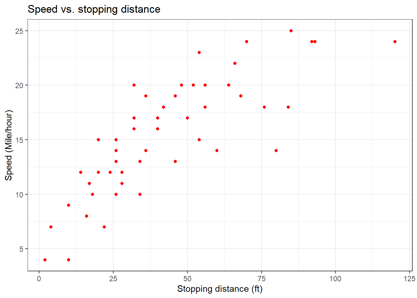x = "Stopping distance (ft)") +